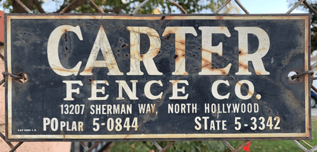 On Amestoy Avenue near Stagg Street, there’s an old original Carter Fence Co. sign on a neighbors old chain link fence with the even older seven-digit phone numbers on it: